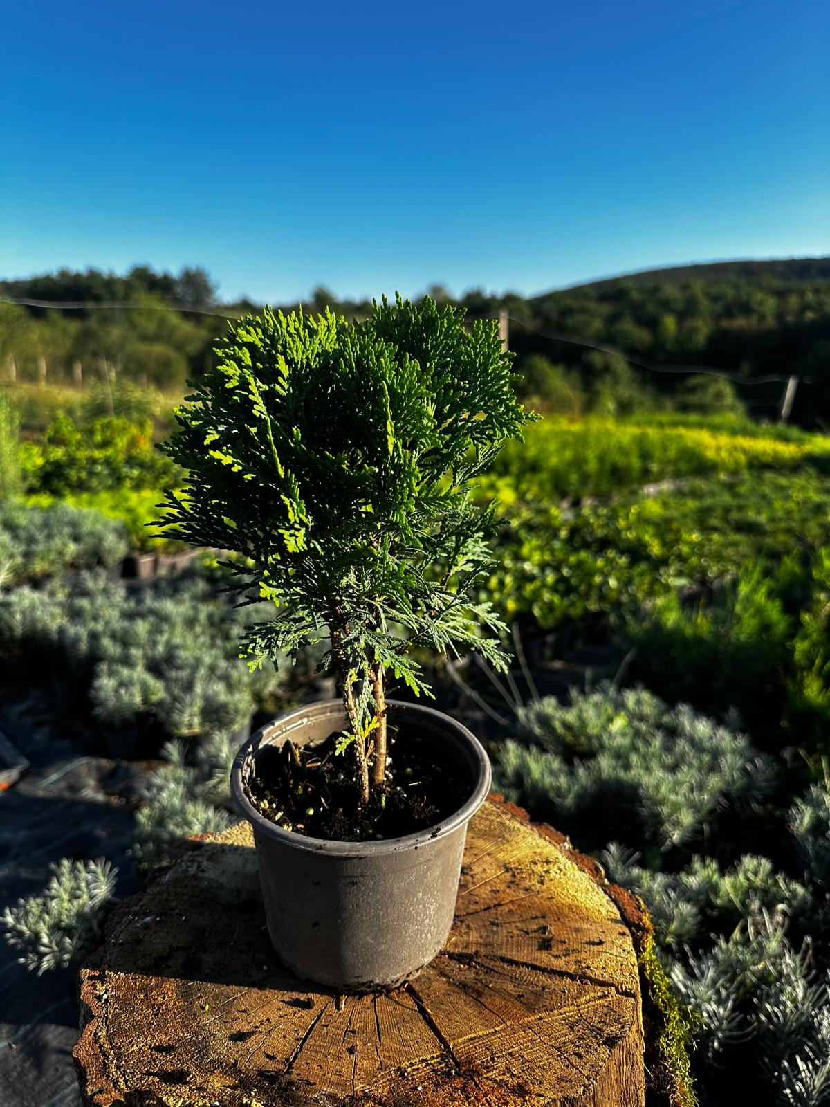 Tuia sferică Danica este un mic bijou al grădinii – mereu verde, compactă și cu formă naturală perfect rotundă, pe care o păstrează singură, fără a fi nevoie de tundere. Crește încet și elegant, ajungând la aproximativ 60–80 cm, ceea ce o face ideală pentru grădini mici, alei, rocării sau ghivece decorative.